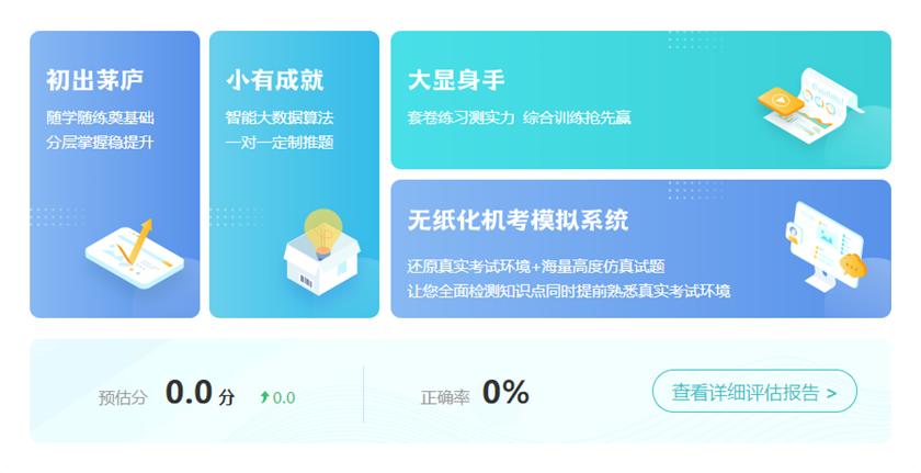 數據反饋:預估分、考點掌握能力、正確率、考友排行。了解詳情>>