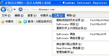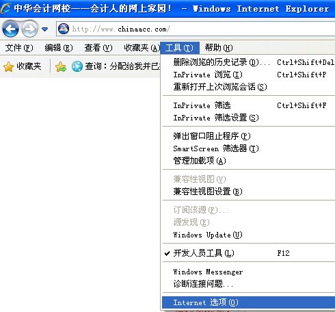 • 單擊瀏覽器"工具"菜單,選擇"internet選項(O)…"進入。