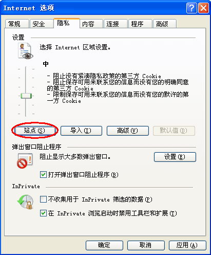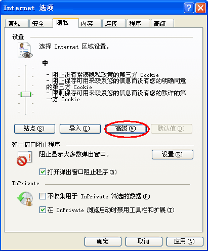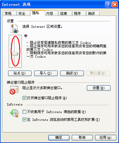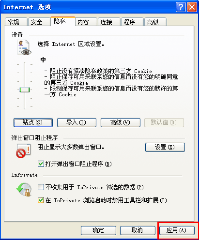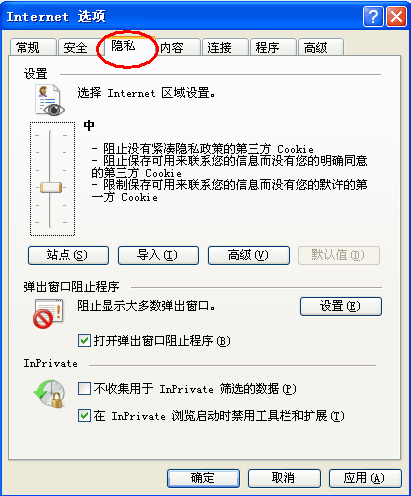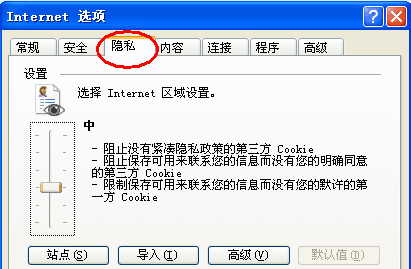 • 單擊"隱私"標簽,出現(xiàn)以下界面: