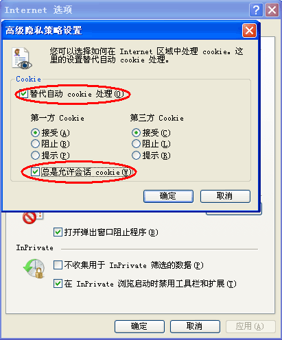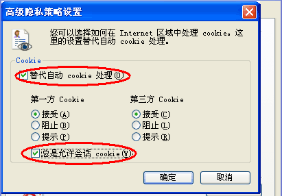 • 進入后請將"替換自動cookies處理",及“總是允許回話cookies”兩項設(shè)定為"啟用"。