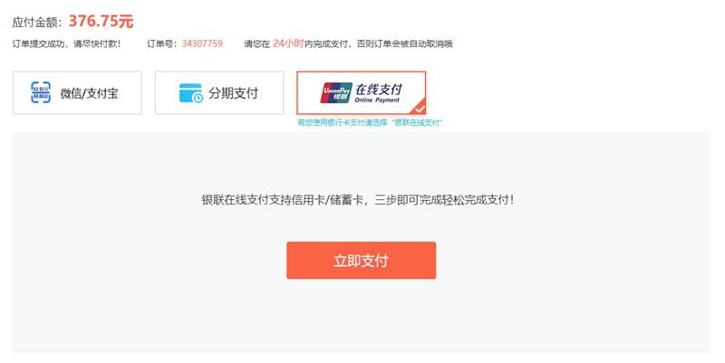 b、意外斷線等狀況而導致支付的不成功,可以按“提交”鍵重新提交一次訂單。
