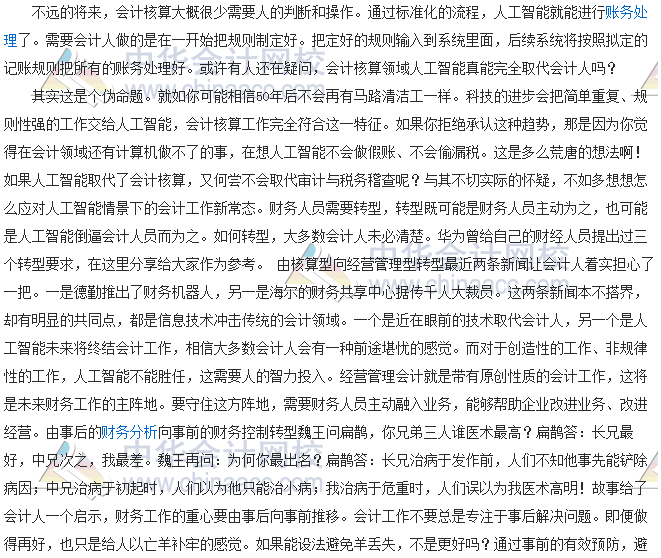 最近很多人在熱炒管理會計,預言管理會計前景看好,傳統會計必將式微。這里所謂的傳統會計是指做憑證、出報表的會計,此外的會計職能差不多都可歸為管理會計的范疇。果真如此,傳統會計真的危矣!