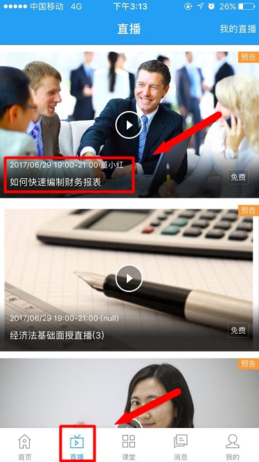 首先你需要下載“正保會(huì)計(jì)網(wǎng)校APP”并安裝(點(diǎn)擊下載),然后登錄進(jìn)入直播課堂。