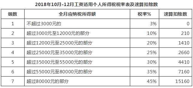關于2018年10月-12月工資的計算,是指稅款所屬期是10月-12月,注意不是納稅申報時間點,說的再通俗一點:就是2018年11月報2018年10月的個稅,適用5000元新的費用標準和新的稅率表;2018年10月申報2018年9月的個稅,還是適用3500元舊的費用標準和就的稅率表。
