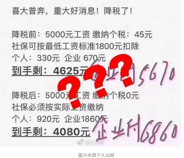 很多人不明白的是,為什么個稅免征額降了之后,為什么到手的工資還變少了?質疑社保為什么不按照固定的基數,這屬于變相多扣錢嗎?