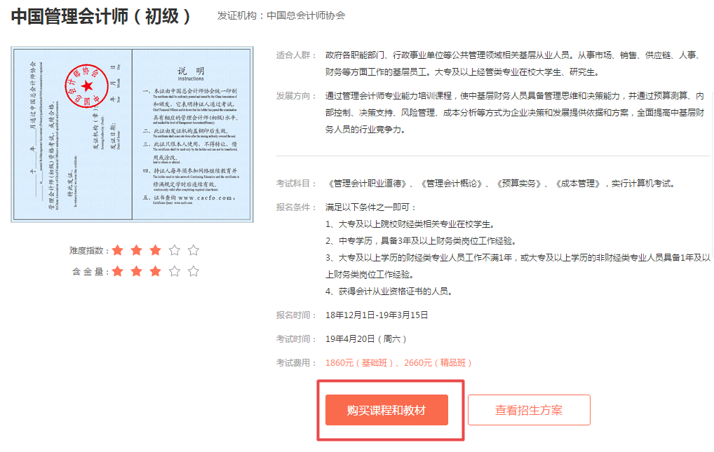 2019年管理會(huì)計(jì)師(初級(jí))專業(yè)能力考試擬舉行三次:4月20日、8月24日、12月21日。2019年第二次考試報(bào)名時(shí)間為2019年5月1日至7與15日,此前可以聽課練題做好復(fù)習(xí),8月24日參加考試。