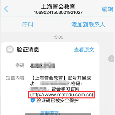 2.收到一條上海管會(huì)教育的短信,有學(xué)習(xí)官網(wǎng)的網(wǎng)址,用戶名和密碼。