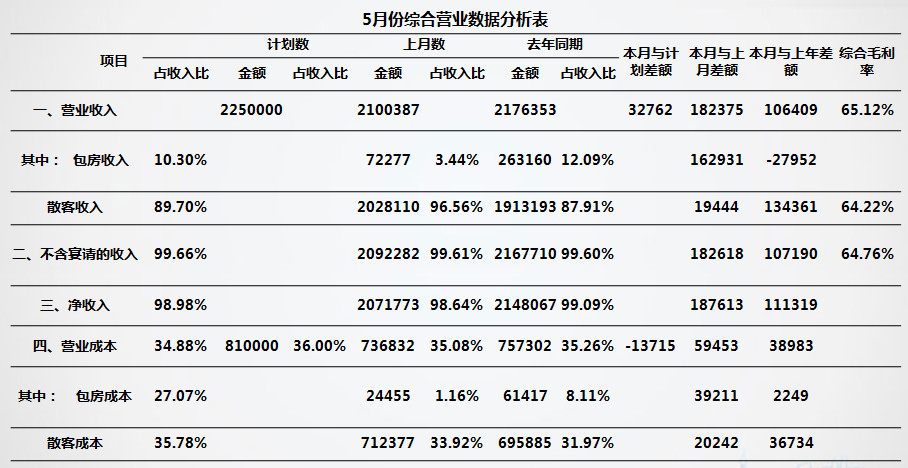 要從這個方面進行分析,首先要了解營業收入和營業成本方面的數據,因為綜合毛利率是由這兩個數據進行計算的,計算差異的存在與這兩方面有密切的關系。在店面的綜合營業數據分析里面,分析的路徑有本月數、計劃數、上月數、去年同期,根據相對應的科目來進行數據對比,其次通過本月與計劃差額、本月與上月差額、本月與上年差額的計算來核算綜合毛利率,一般是按照標準偏差的上下2個點視同為正常的范圍,在本案例中,綜合毛利率是65.12%,所以在63.12%以下67.12%以上的都要進行數據分析;另外,成本數據來源之一是月底的盤庫,通過盤點計算準確的毛利率,通過表格可發現當月盤存的金額和盤虧的金額,從而得到相應的影響成本的數據和綜合毛利率的數據,通過此種方式來進行數據分析,來查找綜合毛利率高低的原因。