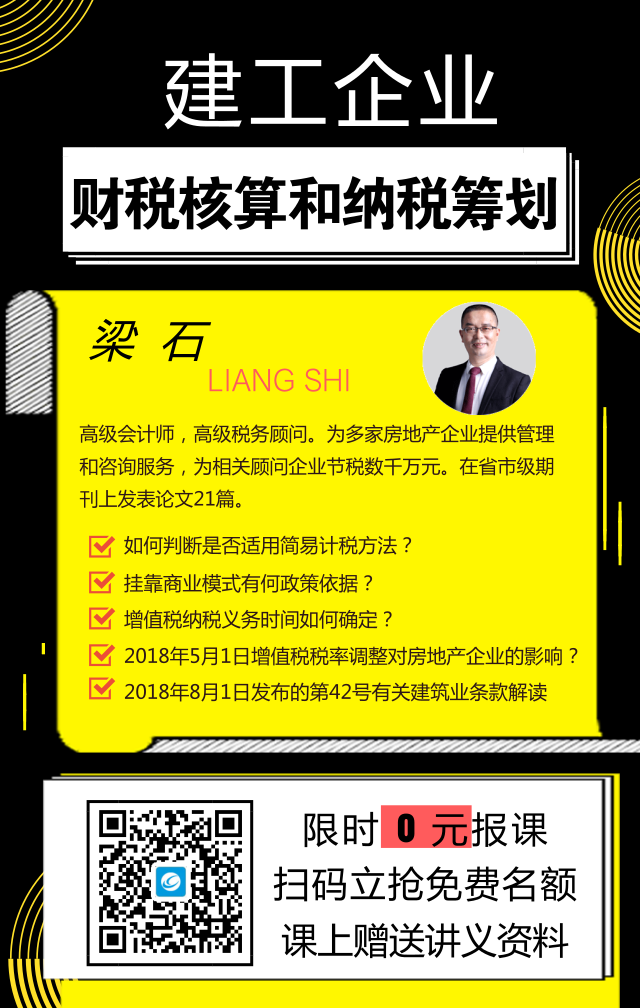 課程收益:課程結(jié)合實(shí)際案例的講解,讓學(xué)員針對(duì)施工企業(yè)對(duì)簡(jiǎn)易計(jì)稅方法、商業(yè)模式、增值稅納等相關(guān)內(nèi)容有所了解,課程期間可以針對(duì)您自身業(yè)務(wù)中的疑難問(wèn)題進(jìn)行解答。