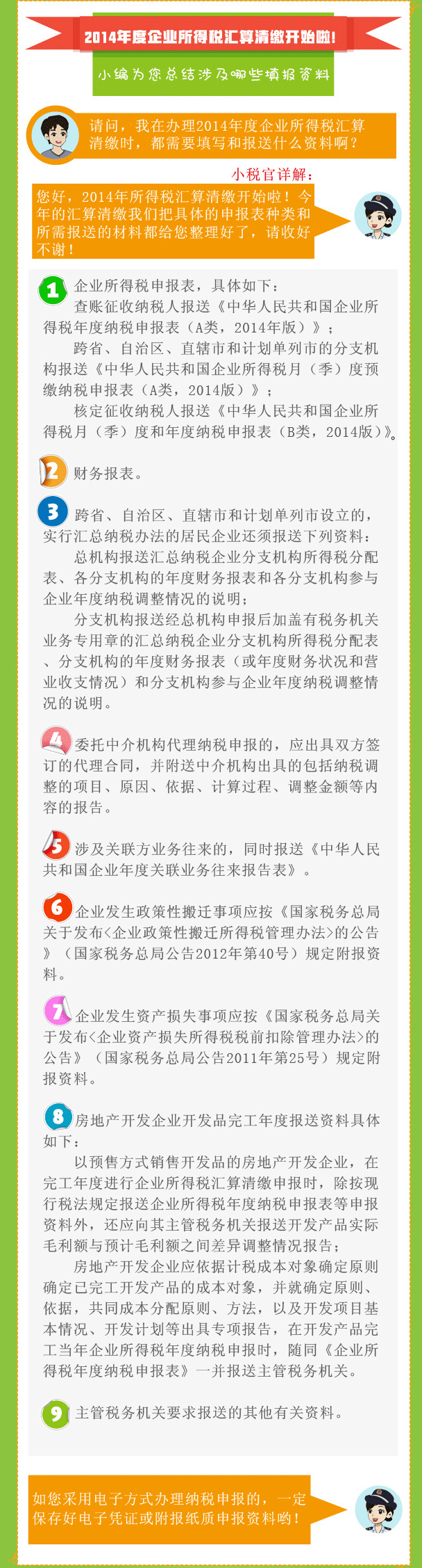 2014企業所得稅匯算清繳需要填寫和報送哪些資料