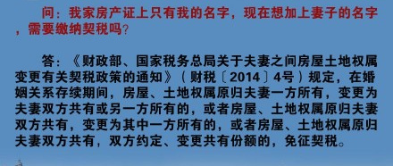 我家房產證上只有我的名字,現在想加上妻子的名字,需要繳納契稅嗎?