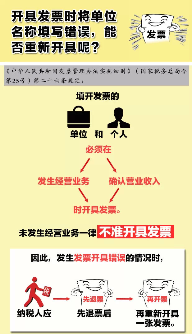 開具發票時將單位名稱填寫錯誤,能否重新開具呢?下面搜集了相關政策規定,供大家參考,希望對大家有所幫助,詳情如下圖: