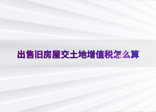 在出售舊房屋時,計算土地增值稅是許多房主關心的問題。