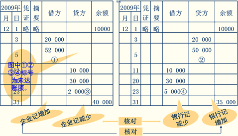(1)12月5日,企業收到購買單位轉賬支票一張,計52 000元,已開具送款單送存銀行,但銀行尚未入賬。