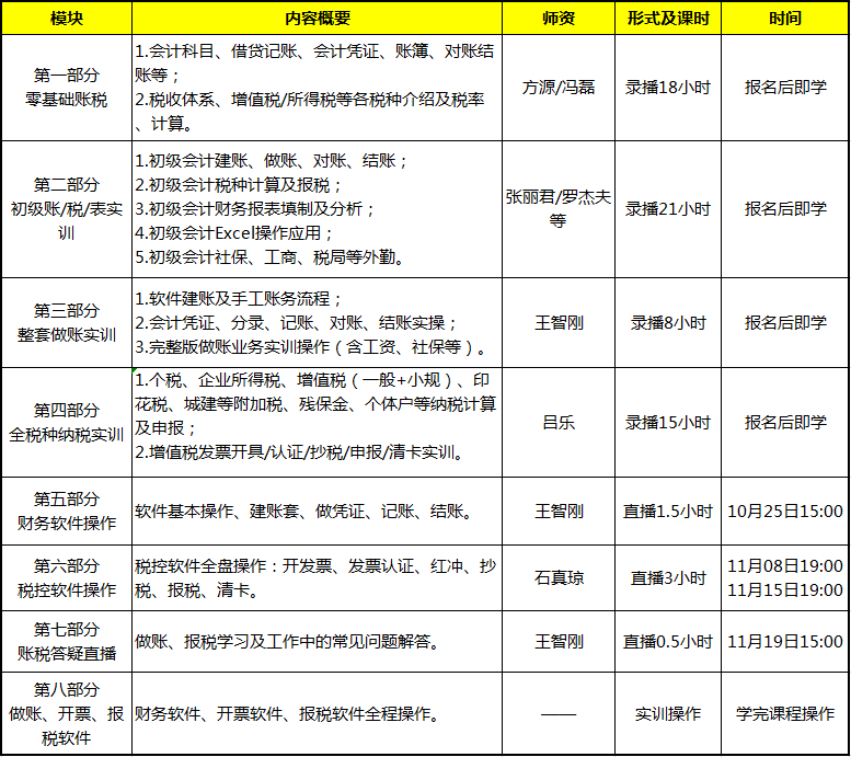 ※私教班專門針對“十不會”:不會編憑證分錄,不會財務軟件/稅控軟件,不會建賬做賬,不會開發票,不會專票認證,不會抄報稅清卡,不會納稅申報,不會報表,不會外勤,不會Excel!