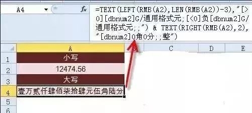 =TEXT(LEFT(RMB(A2),LEN(RMB(A2))-3),"[>0][dbnum2]G/通用格式元;[<0]負[dbnum2]G/通用格式元1473")&TEXT(RIGHT(RMB(A2),2),"[dbnum2]0角0分1473整")