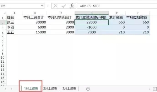 工資表原個稅列變為3列,分別是累計應繳預扣所得額、累計稅額、本月應扣繳稅額。(列標題大家自已命名吧)