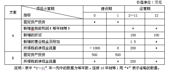 3.已知:某企業擬進行一項單純固定資產投資,現有A、B兩個互斥方案可供選擇,相關資料如下表所示: