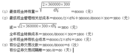 4.已知:某公司現金收支平穩,預計全年(按360天計算)現金需要量為360 000元,現金與有價證券的轉換成本為每次300元,有價證券年均報酬率為6%。