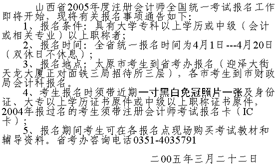 [山西省]2005年注冊會計師全國統一考試報名簡章