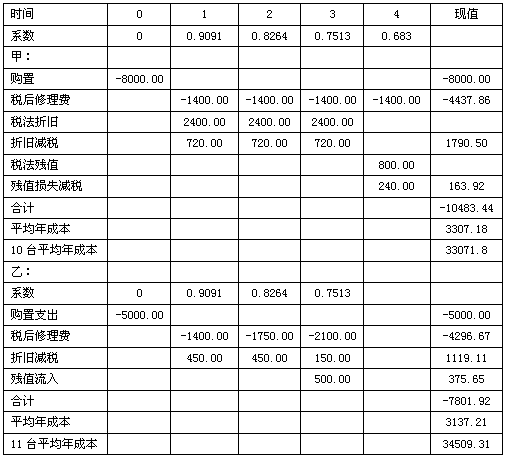 11臺設備的平均年成本=3137.21×11=34509.31元