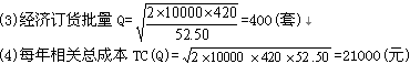 3.【答案】 (1)訂貨成本=(13400-10760)/22+280+8×2.5=420(元)