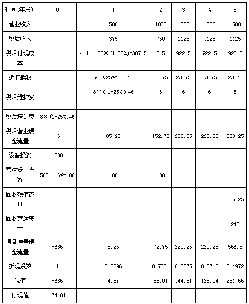 (3)編制租賃的還本付息表,并且計算租賃相對于自制的凈現值;判斷該方案是否可行,并說明理由。