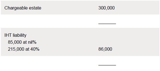· Only £85,000 (325,000 – 240,000) of the nil rate band is available against the death estate.