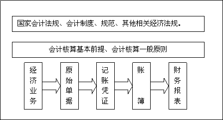 傳統的會計流程是會計人員在會計核算的基本前提和一般原則下,以貨幣為計量工具對企業經濟業務進行記錄。會計核算流程大體如下所示: