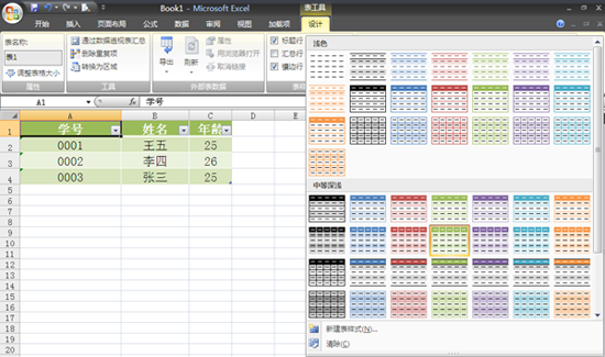 圖:當(dāng)鼠標(biāo)移到庫中的某樣式上時(shí),所選表將臨時(shí)呈現(xiàn)該樣式應(yīng)用后的效果