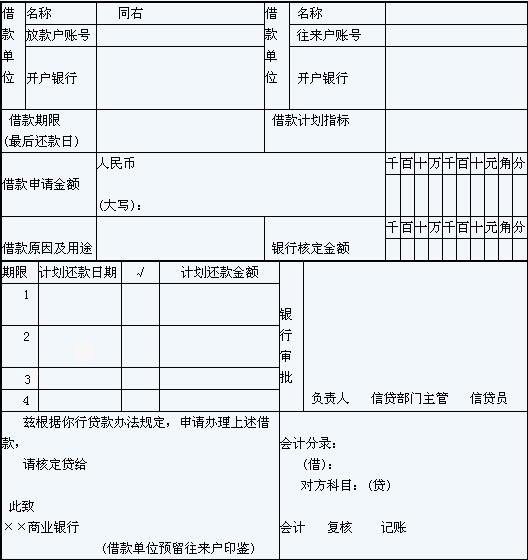 借款人申請借款時,應向銀行提交借款申請書和借款憑證(見表1)一式五聯,第一聯回單聯,第二聯借方憑證,第三聯貸方憑證,第四聯借據聯代分戶卡片,第五聯退業務部門留存。