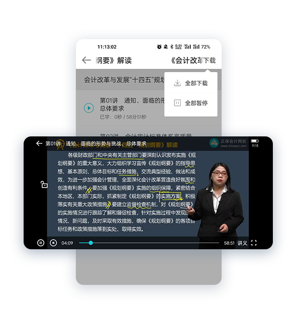 手機(jī)/平板學(xué)習(xí)界面簡潔一鍵快速聽課、一鍵全部下載、