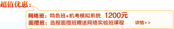 課程說明: 1、面授輔導:包括面授集訓講解7天,沖刺集訓3天,共計10天80課時,贈送網絡實驗班課程(價值4500元); 2、配套資料:包括面授課程講義、備考寶典、模擬試題、歷年試題等; 3、上機模擬測試,提供判卷服務; 4、上課日期:將于開課前一個月公布; 5、上課時間:上午9:00-12:00、下午14:00-17:00、晚上18:00-20:00(晚自習) 6、食宿標準:食宿費4000元/人。 * 如考試日期等政策變化,將對課程安排進行微調。 |
