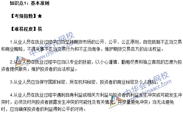 為了幫助參加2016年期貨從業(yè)資格考試的學員鞏固知識,提高備考效果,正保會計網校精心為大家整理了期貨從業(yè)資格考試《期貨法律法規(guī)》法條十五“期貨從業(yè)人員執(zhí)業(yè)行為準則”相關高頻考點供大家學習,希望對廣大考生有所幫助,祝大家學習愉快,夢想成真!