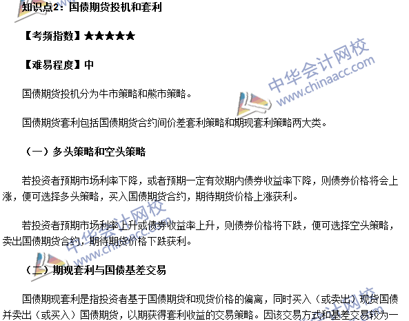 期貨從業《期貨基礎知識》第八章高頻考點:國債期貨投機和套利