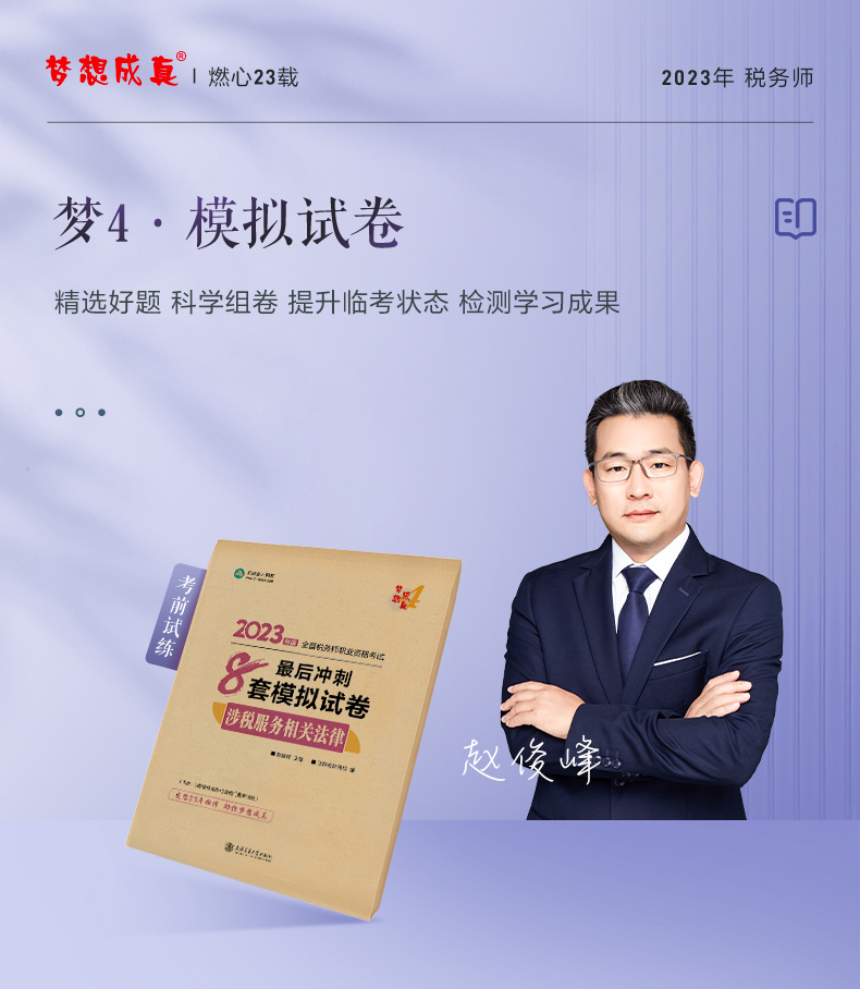• 書名:2023年稅務(wù)師“夢(mèng)想成真”系列輔導(dǎo)書《涉稅服務(wù)相關(guān)法律》最后沖刺8套模擬試卷