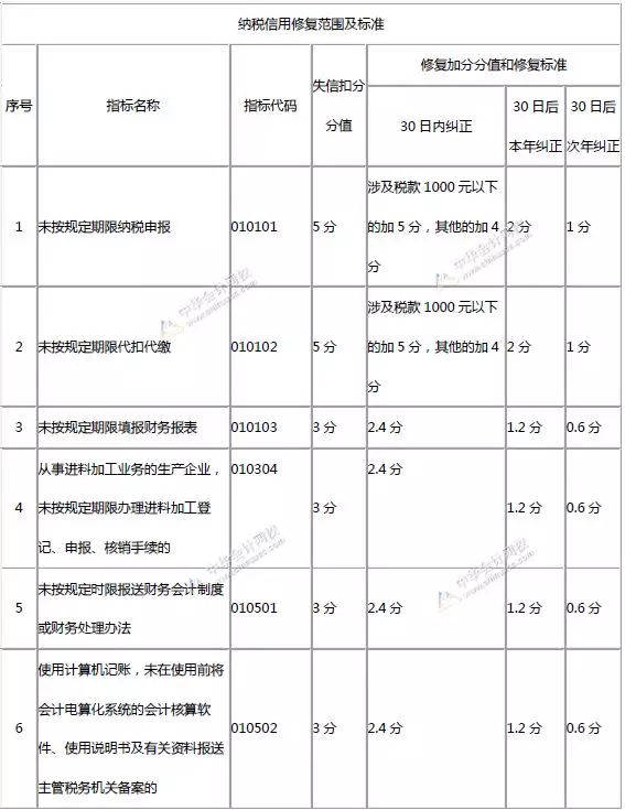具體的《納稅信用修復(fù)范圍及標(biāo)準(zhǔn)》見下表: