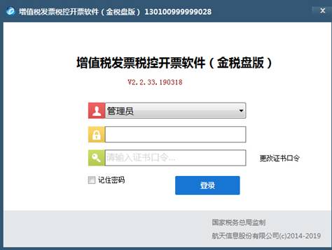 4.升級成功標識。升級后開票軟件(金稅盤版)版本為V2.2.33.190318,升級后軟件如下圖: