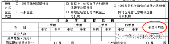 2.資產總額對應的“季度平均值”欄:填報截至本稅款所屬期末資產總額金額的季度平均值,計算方法如下: