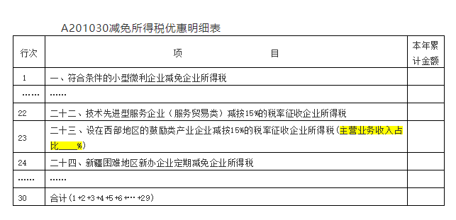 五、附表A201030第23行新增的西部大開發企業所得稅優惠“主營業務收入占比____%”的填報