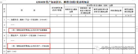 四、A201020 資產加速折舊、攤銷(扣除)優惠明細表的無形資產一次性扣除、無形資產加速攤銷僅適用于符合條件的海南自由貿易港企業