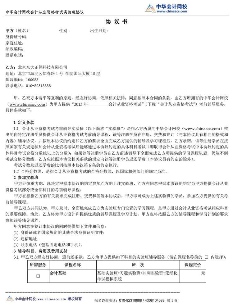 會計從業“實驗班”協議書