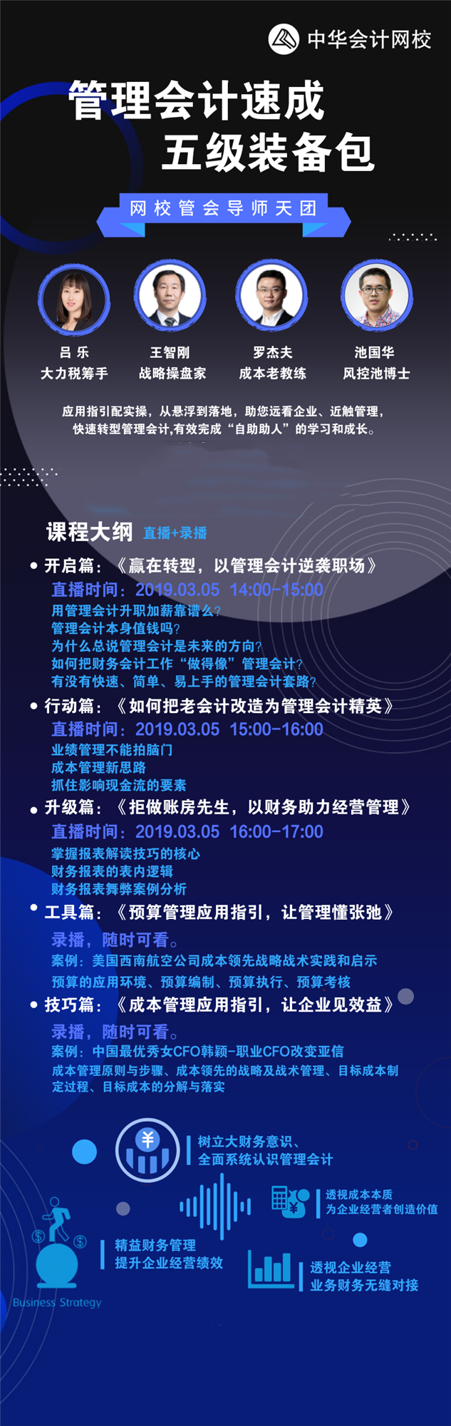 那么該怎樣成為管理會計?財務小白又該考取哪些證書來證明的自己?本期直播,網校講師團將帶你走進管理會計,認識管理會計、了解管理會計,并告訴你成為管理會計的便捷通道!