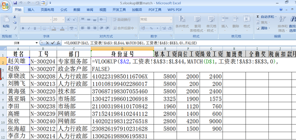 案例:給定部分人員,從工資總表上返回其所有工資相關數據