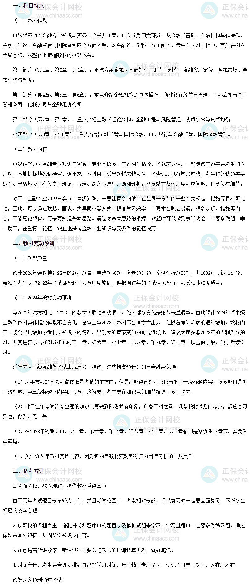 2024年中級(jí)經(jīng)濟(jì)師《金融》科目特點(diǎn)、教材預(yù)測(cè)及備考方法