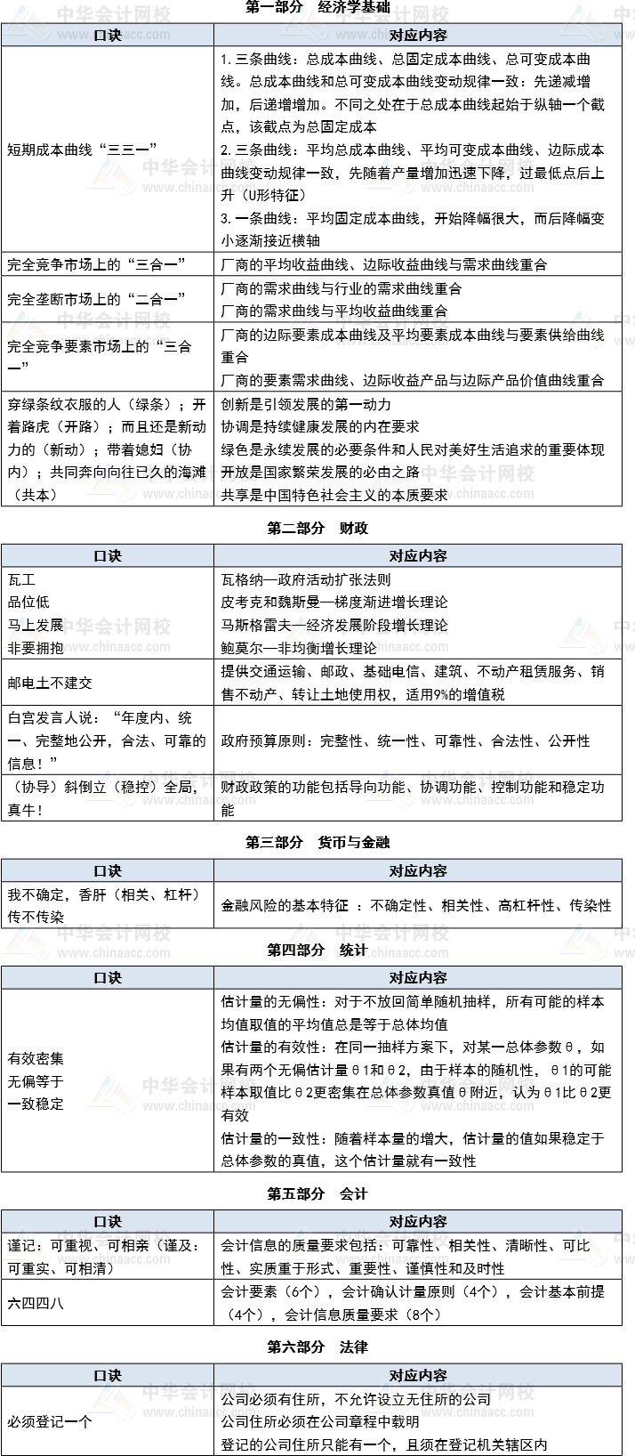 張寧老師中級經濟師經濟基礎記憶口訣