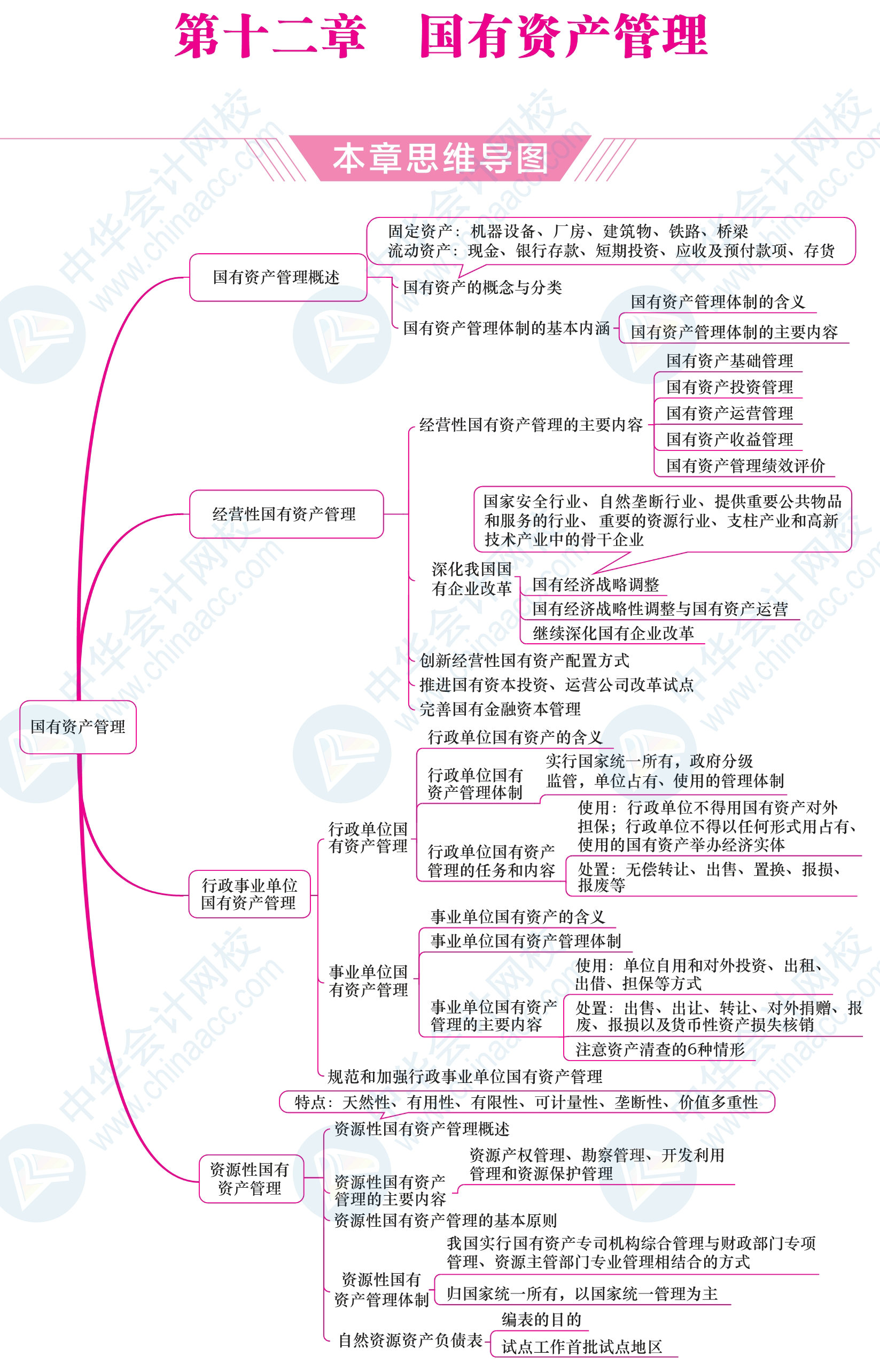 正保會計網校為大家提供中級經濟師各科思維導圖,幫助大家更清晰地了解各章節重點學習的內容,備考有方向!以下是2021年中級經濟師《財政稅收》第十二章思維導圖:國有資產管理,一起來看看吧!