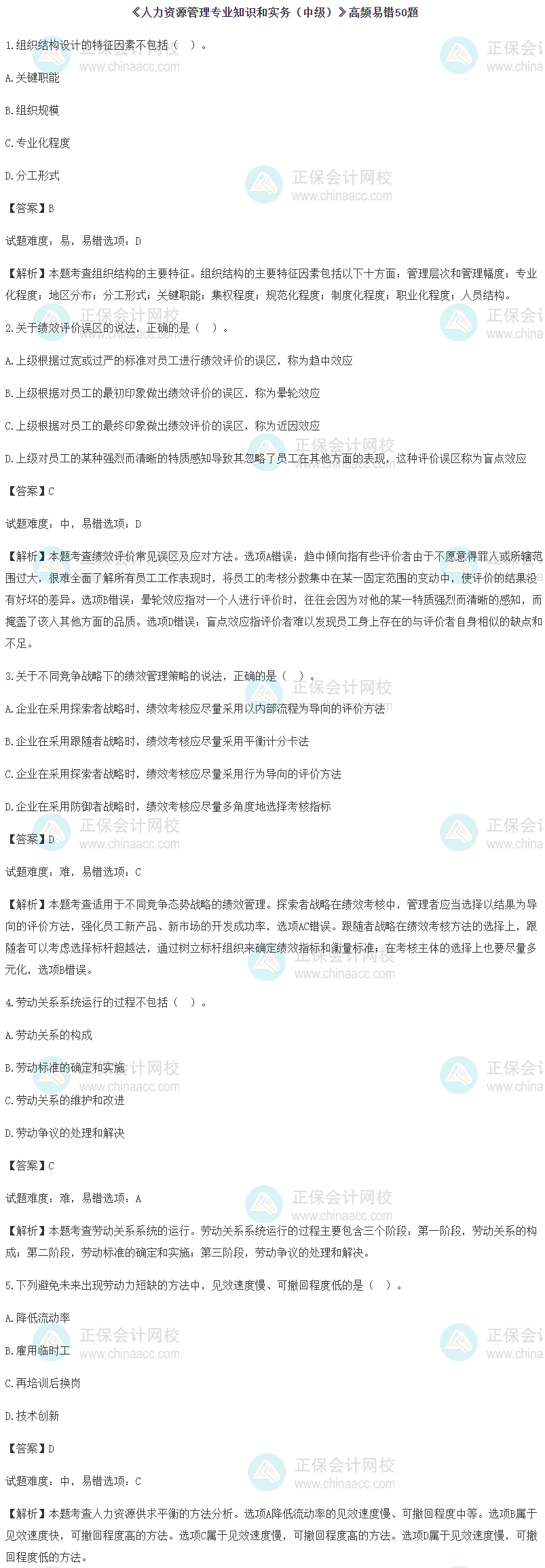 點擊下載完整版pdf:2024中級經濟師《人力資源》高頻易錯50題>>