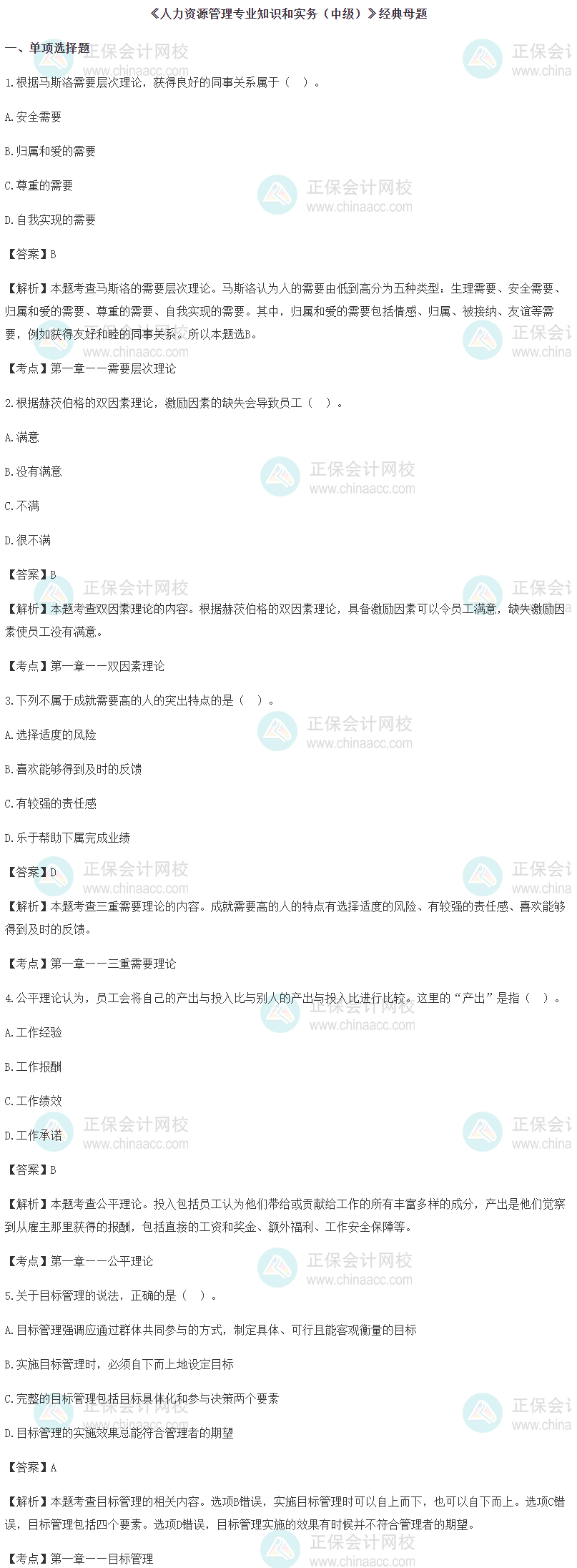 考前刷一遍!2024中級經濟師《人力資源》經典母題