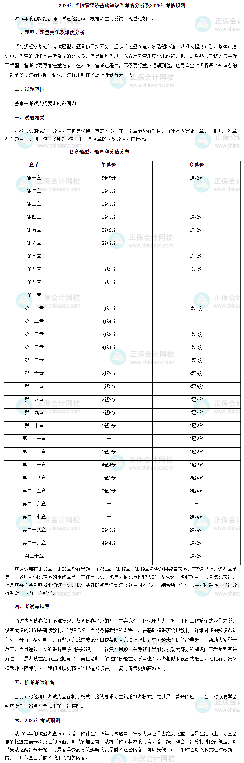 2024初級經濟師《經濟基礎知識》考情分析及2025考情預測